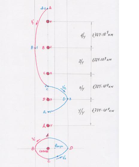 ![]() Ролик - с пояснениями о поступательном движении и вращательном, и про суперпозицию движений: Можно посмотреть - определения типов движения. Вращение: https://ru.wikipedia.org/wiki/%D0%92...BD%D0%B8%D0%B5 "Враща́тельное движе́ние — вид механического движения. При вращательном движении материальной точки она описывает окружность. При вращательном движении абсолютно твёрдого тела все его точки описывают окружности, расположенные в параллельных плоскостях. Центры всех окружностей лежат при этом на одной прямой, перпендикулярной к плоскостям окружностей и называемой осью вращения. Ось вращения может располагаться внутри тела и за его пределами. Ось вращения в данной системе отсчёта может быть как подвижной, так и неподвижной..." Безусловно... - центры окружностей, описываемых точками тела, изображённого на картинке, при совершении движения, отражённом на картинке - по окружности/ээлипсу... - не лежат на "оси вращения". То есть, движение Земли относительно Солнца - не вращательный тип движения. Определение поступательного типа движения: http://slovorus.ru/index.php?a=&ID=5...C6%C5%CD%C8%C5 "ПОСТУПАТЕЛЬНОЕ ДВИЖЕНИЕ, перемещение тела, при котором любая прямая, проведенная в теле, перемещается параллельно самой себе. При поступательном движении все точки тела описывают одинаковые траектории и имеют в каждый момент времени одинаковые скорости и ускорения." Безусловно, также... - любая прямая, проведённая в теле, жестко связанная с телом, изображённом на картинке, при совершении движения, отражённом на картинке - перемещается параллельно сама себе. То есть, это движение - постапательное. С учётом вращения... вкруг своей оси... - суперпозиция. Так-то, можно сказать, что на картинке изображено движение глобуса. Вкруг свечки. Два случая... - первый: ставится свечка на табуретку, глобус берётся в руки, и с ним вкруг табуретки со свечкой совершается обход... такое движение будет - вращательным. Но "смены времён года" при этом у глобуса - не будет. И такой случай - не соответствует движению Земли относительно Солнца. Второй случай: свечка - на табуретке, перед человеком... он просто глобус, не сходя с места, обводит вкруг свечки. "Смена времён`y года" в этом случае у глобуса будет иметь место... Случай соответствует движению Земли относительно Солнца. Но случаи-то - разные. Нельзя объяснять поступательное движение, как вращение. Как получается замкнутое движение Земли вкруг Солнца? Тоже два случая. Первый... глобус крепится к стержню, человек идёт, скорость - 400 единиц в секунду, в одной руке неся свечку, по прямой, и вращает глобус посредством стержня, второй рукой, линейная скорость - 30 единиц в секунду... Траектория свечки - прямая, траектория глобус - волна, плоская. Картинка: ![]() Относительно свечки траектория движения глобуса - замкнутая кривая, окружность (эллипс), тип движения - вращение. Но такое - не соответствует движению Земли относительно Солнца; у глобуса нет "смены времён года". Второй случай: один человек идёт по прямой - неся свечку... скорость та же, второй... - двигаясь с такими же скоростями и ускорениями, как глобус в первом случае... - несёт глобус. Картинка - та же. Ну, Солнце абсолютным образом движется в пространстве Вселенной со скоростью 400 км/сек, направление от созвездия Водолея на созвездие Льва, при скорости Земли относительно Солнца - 30 км/сек... движение и Солнца, и Земли - поступательные; а дви